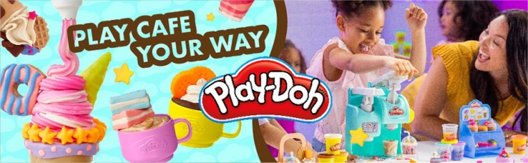 Zestaw Play-Doh Kolorowa kawiarnia zamieni dziecięcy pokój w małą kawiarnię pełną wyobraźni. Dzieci mogą przygotowywać „kawy”, herbaty, frappé lub koktajle z masy plastycznej, ozdabiać je bitą śmietaną i serwować na przezroczystej paterze. Dzięki bogatym akcesoriom oraz foremkom do ciasteczek, muffinek i donutów zabawa wciąż trwa na nowo.