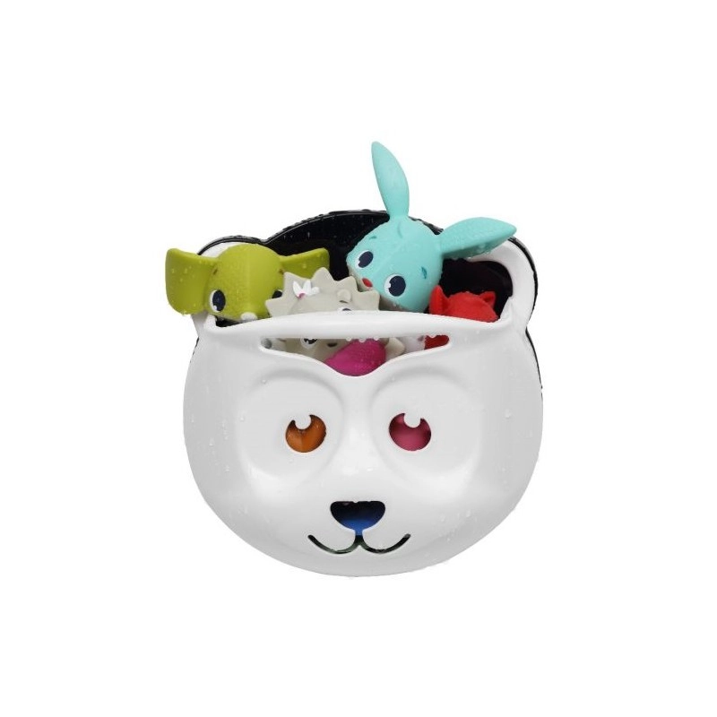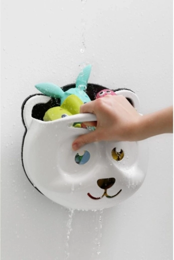Zamień sprzątanie po kąpieli w zabawę. Organizer w kształcie pandy pomieści drobne zabawki i akcesoria kąpielowe, które po kąpieli łatwo włożysz do środka. Dzięki przemyślanym otworom drenażowym woda szybko spływa, a zabawki lepiej schną. Przyssawki umożliwiają łatwy, bezwierceniowy montaż na gładkich powierzchniach, a uchwyt można też zamontować na stałe za pomocą kołków rozporowych.
