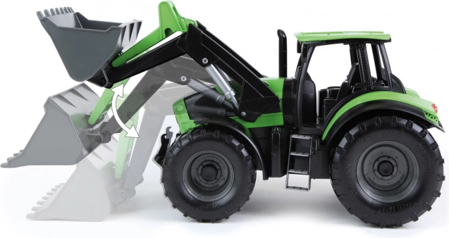 Solidny dziecięcy traktor z łyżką czołową w designie DEUTZ FAHR Agrotron zachwyca realistycznym wykonaniem w skali 1:15. Ma funkcyjną przednią łyżkę, jest wykonany z wysokiej jakości plastiku i nadaje się zarówno do zabawy w domu, jak i na zewnątrz. Długość 45 cm.