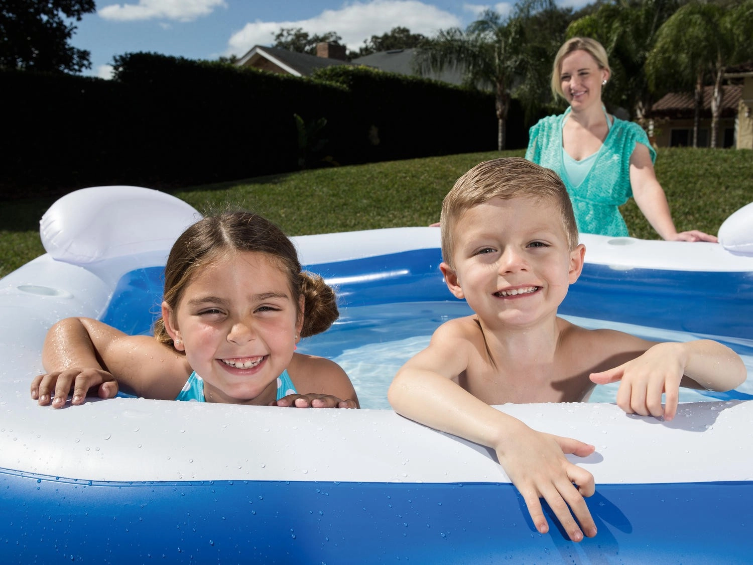 Dwa miękkie miejsca do siedzenia i dwie poduszki pod głowę pozwolą Ci wygodnie się zrelaksować, poczytać lub doglądać dzieci prosto z wody.