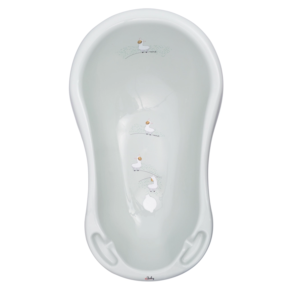 Na dnie wanienki znajduje się zatyczka z odpływem, dzięki czemu wodę po kąpieli szybko i łatwo odprowadzisz. Szerokie i stabilne dno zapewnia wystarczająco dużo miejsca i komfortu na codzienną rutynę. Wanienka wykonana jest z trwałego PVC, które łatwo się czyści i długo służy.
