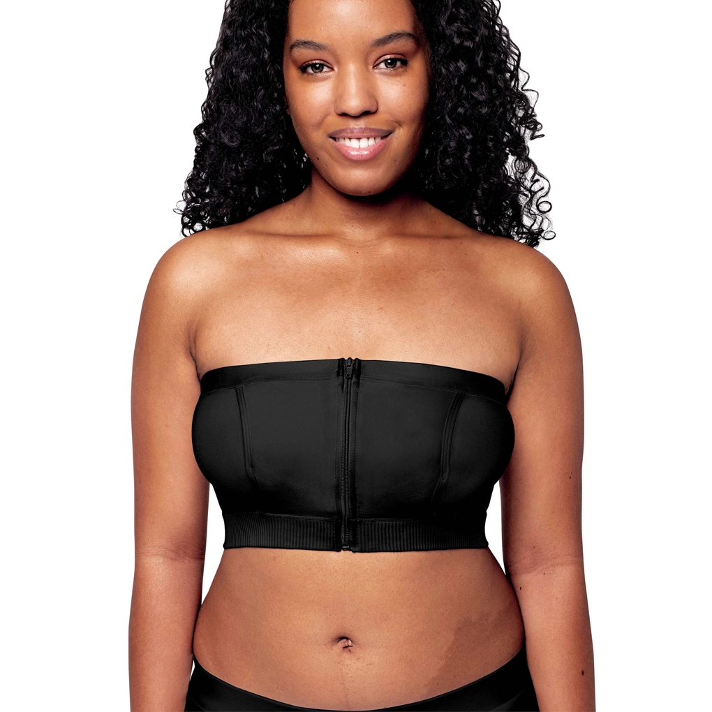 Krój bez ramiączek ze strukturalnymi panelami i elastycznym dolnym brzegiem zapewnia stabilność, komfort oraz pełne zakrycie brodawek pod ubraniem.