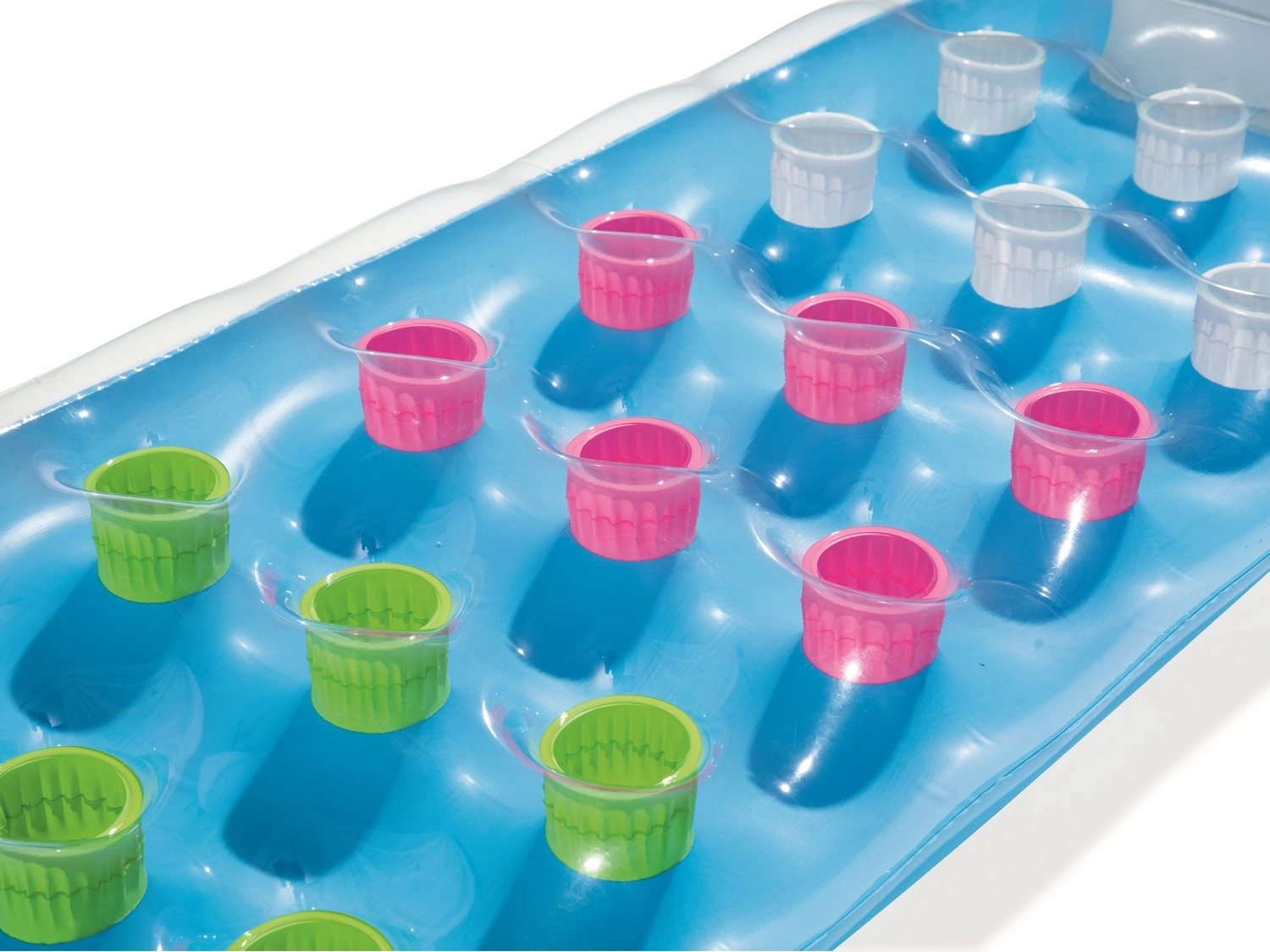 Kolorowe komory powietrzne na całej długości leżaka zapewniają świetną stabilność, sprężystość i wygodę podczas leżenia na wodzie.