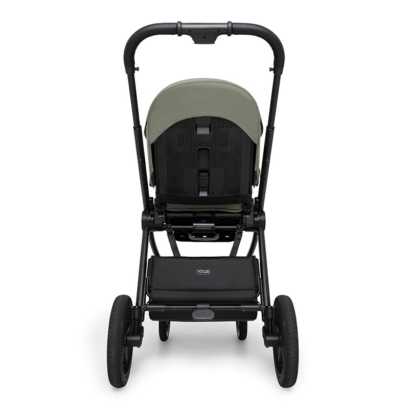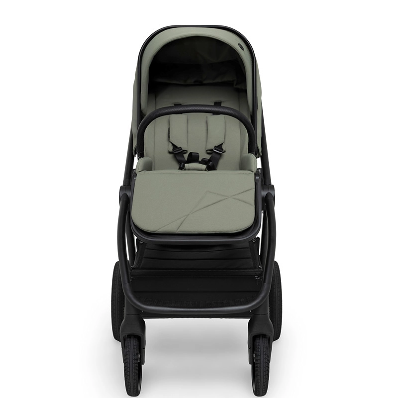 Głęboka gondola z usztywnionym dnem z EPP skutecznie tłumi wstrząsy i dba o komfort termiczny, a system AIRFLOW 3D zapewnia idealną cyrkulację powietrza. Siedzisko spacerowe można zamontować przodem lub tyłem do kierunku jazdy, odchylić aż do pozycji leżącej i uzupełnić miękką, dwustronną wkładką z pianki memory. Duża budka z UPF50+, wentylacją i przedłużeniem chroni dziecko w każdą pogodę.