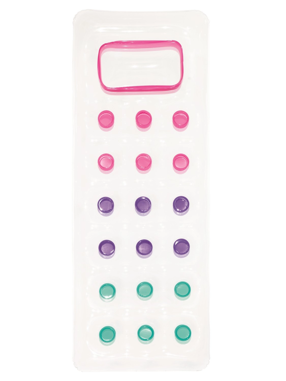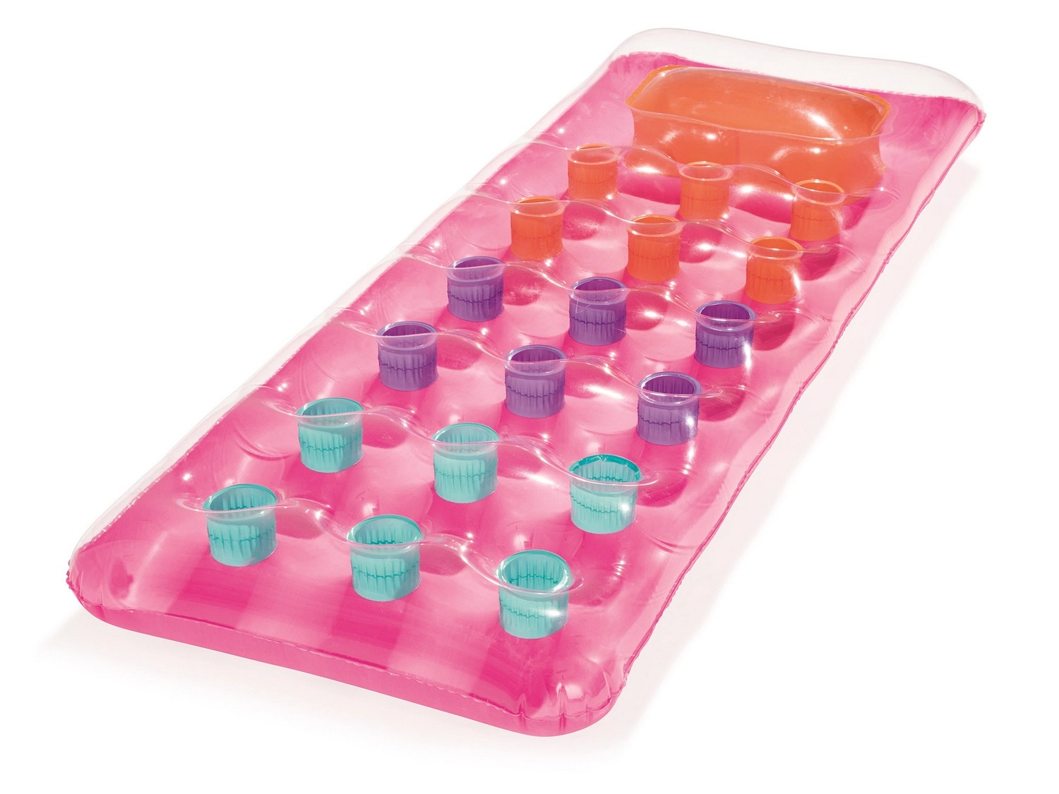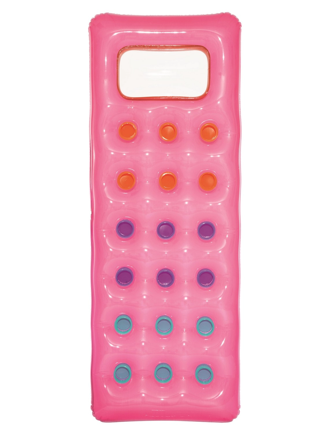 Relaksuj się na wodzie w komforcie i stylu. Leżak o wymiarach 188 × 71 cm zapewnia wygodne podparcie całego ciała, a dzięki przezroczystemu okienku w części poduszki możesz cieszyć się obserwacją podwodnego świata. Wielokomorowa konstrukcja z kolorowymi kieszeniami powietrznymi równomiernie rozkłada ciężar i zwiększa stabilność na wodzie.