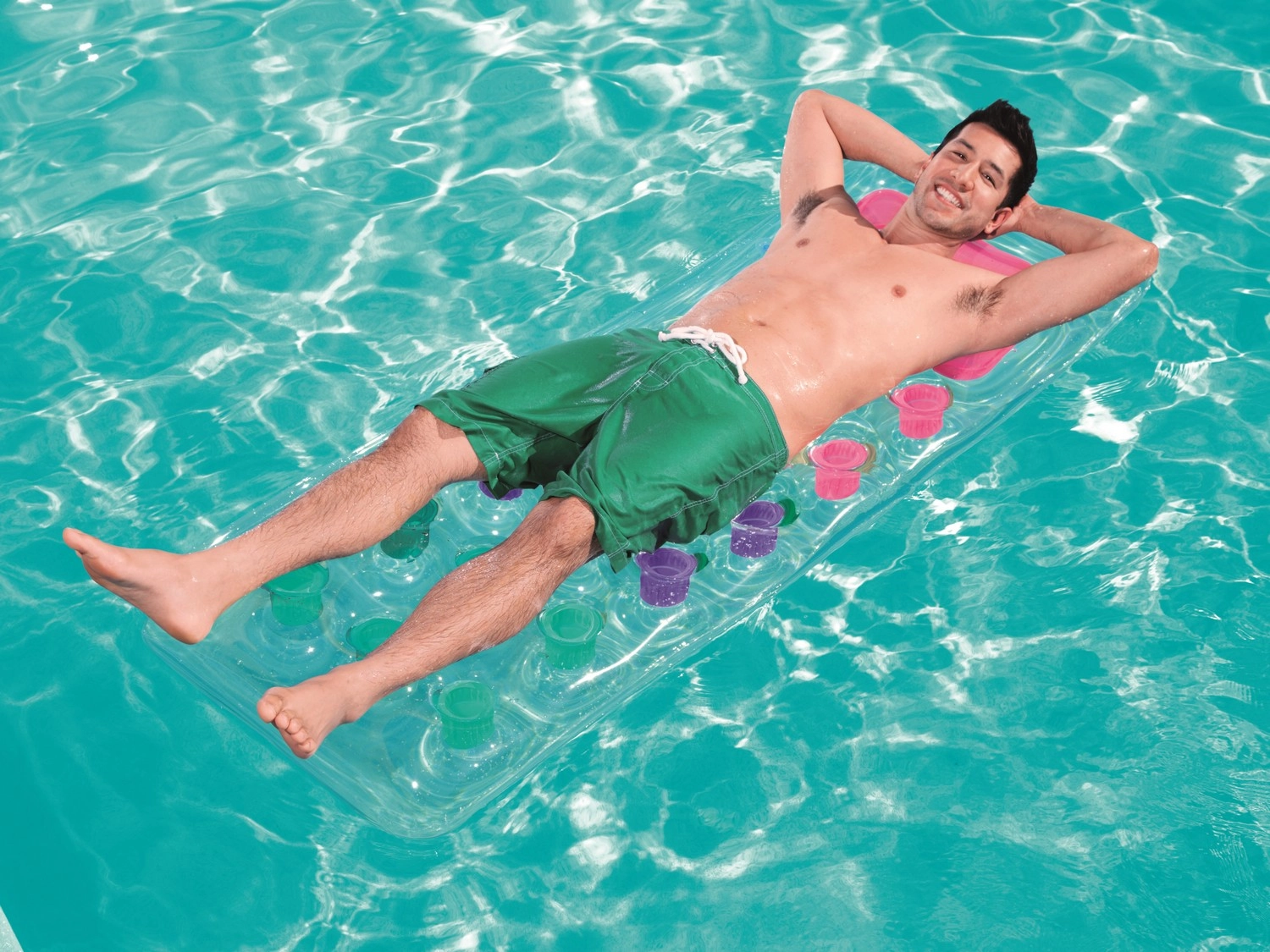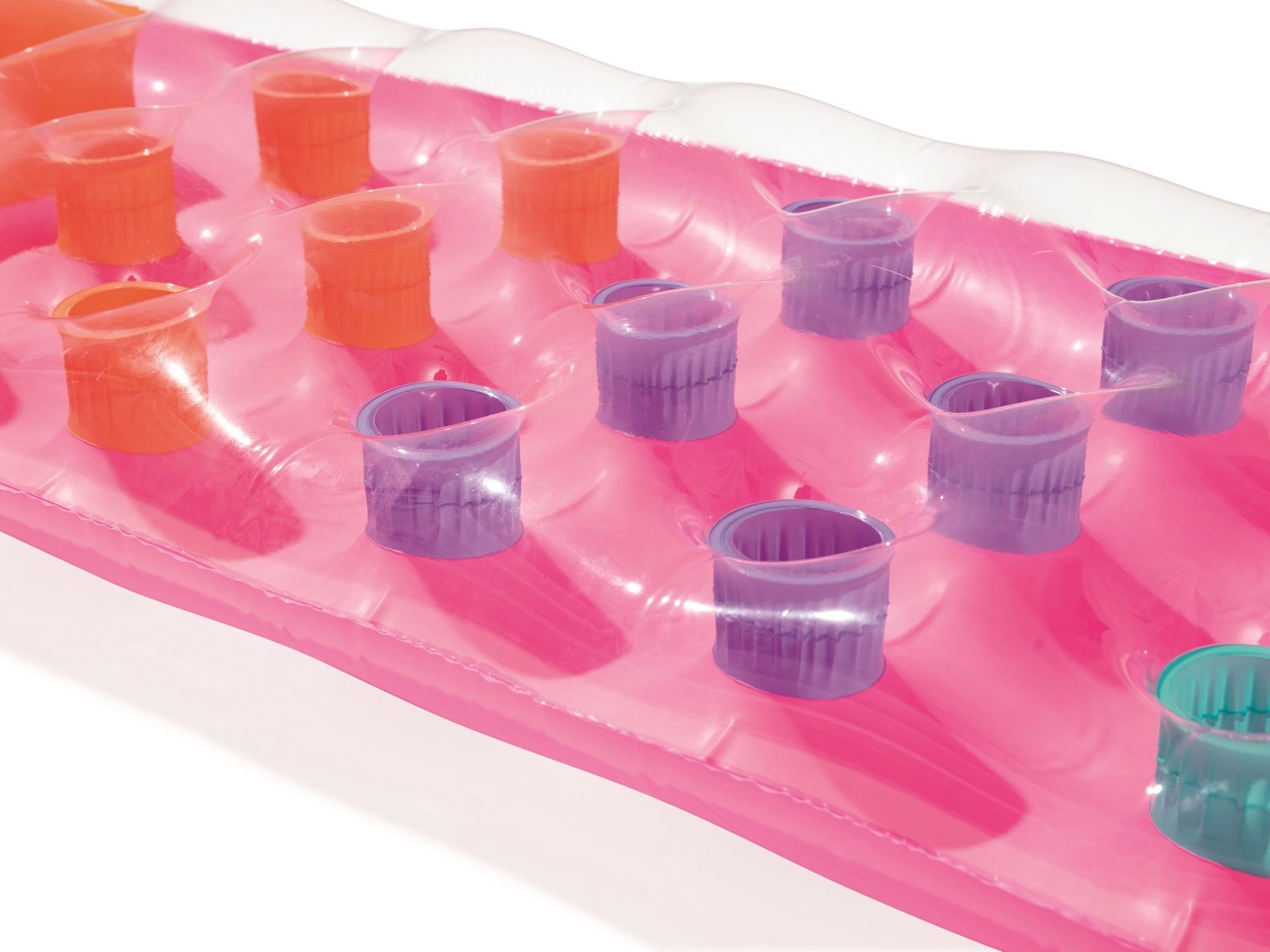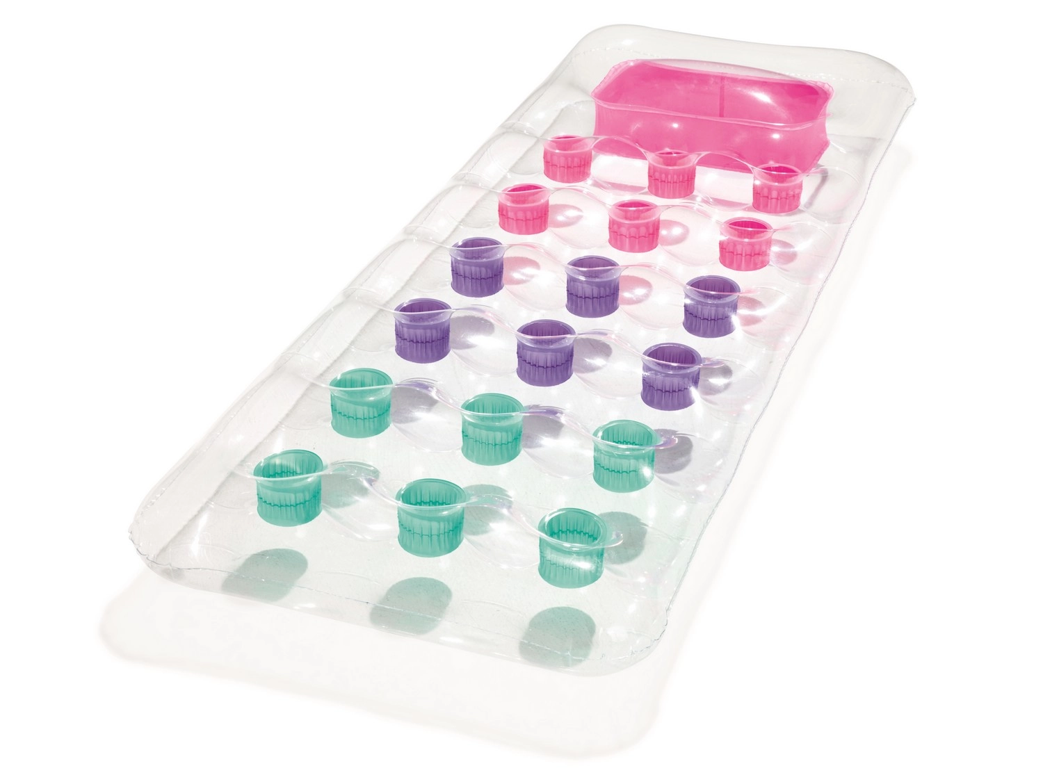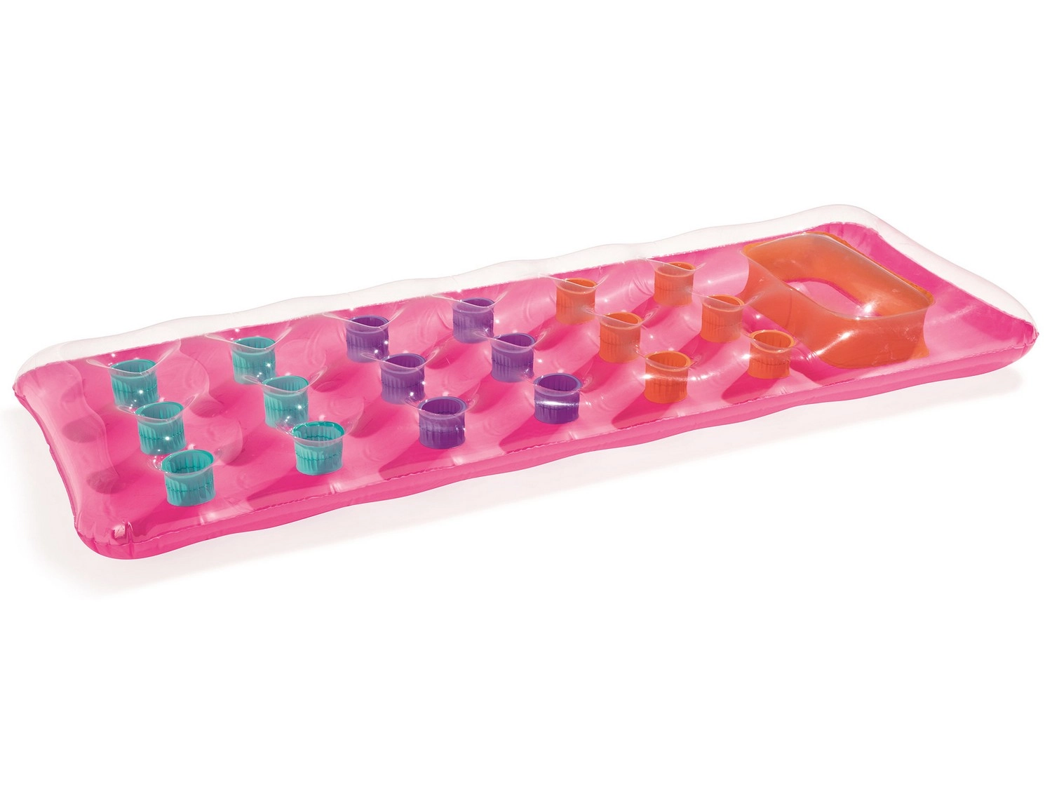 Relaksuj się na wodzie w komforcie i stylu. Leżak o wymiarach 188 × 71 cm zapewnia wygodne podparcie całego ciała, a dzięki przezroczystemu okienku w części poduszki możesz cieszyć się obserwacją podwodnego świata. Wielokomorowa konstrukcja z kolorowymi kieszeniami powietrznymi równomiernie rozkłada ciężar i zwiększa stabilność na wodzie.