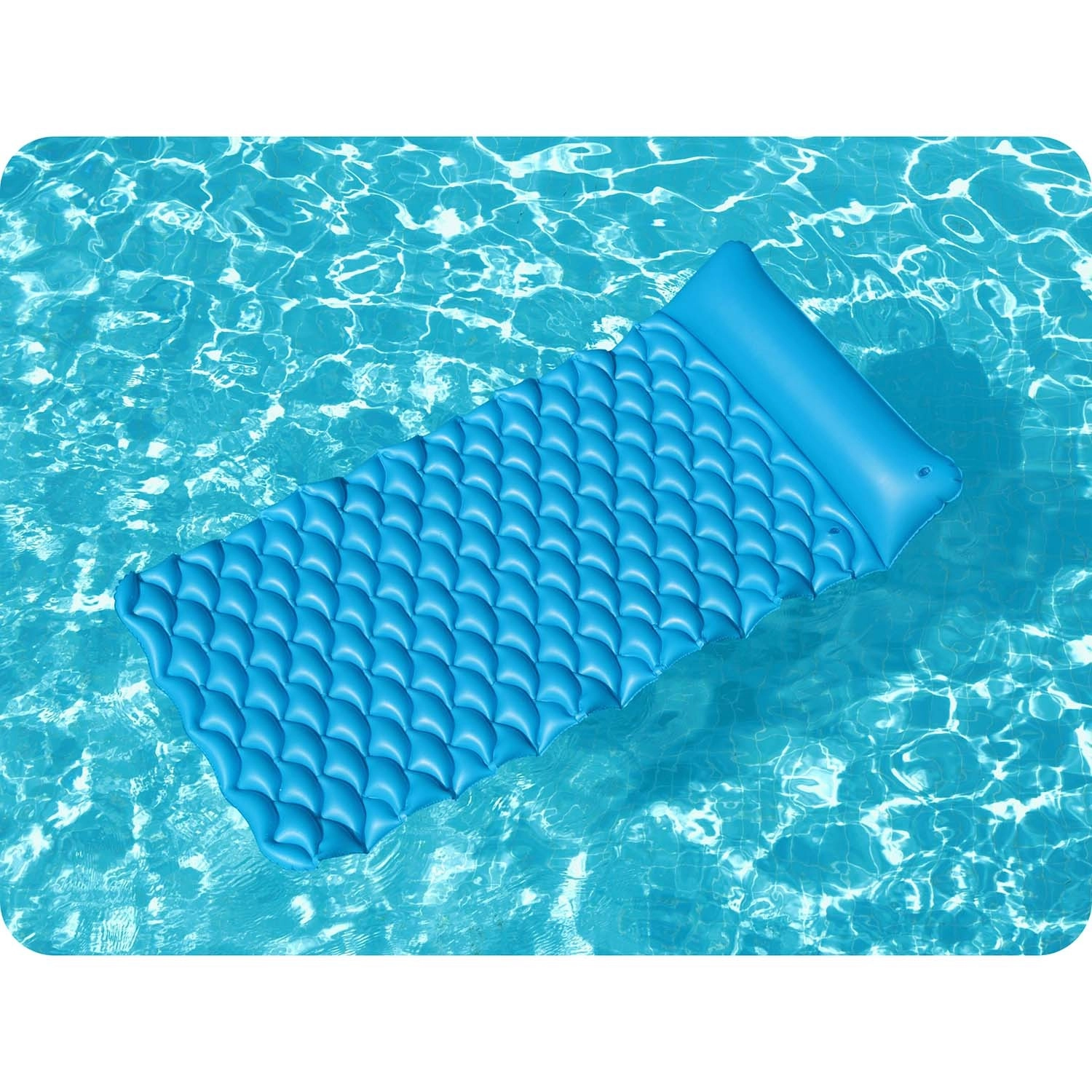 Ten stylowy plażowy materac jest idealny do wypoczynku nad morzem, jeziorem oraz w przydomowym basenie. Dzięki wymiarom 213 × 86 cm oferuje dużo miejsca i komfortu. Zintegrowana dmuchana poduszka podpiera głowę i kark, a przezroczyste okienko uprzyjemnia leżenie i obserwowanie pod taflą wody.