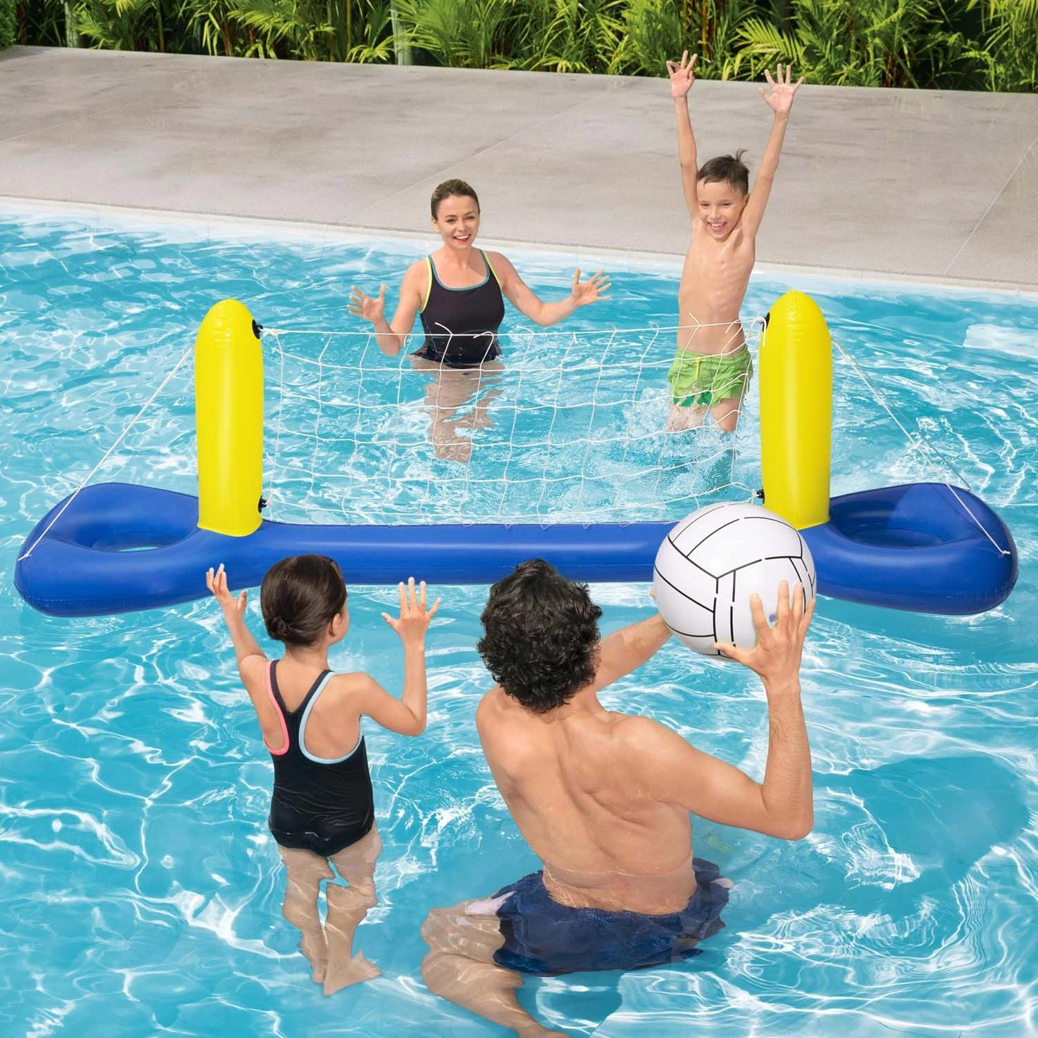 Ta nadmuchiwana siatka do siatkówki do basenu wnosi do Twojego ogrodu solidną dawkę aktywnej rozrywki. Stabilna pływająca podstawa z dwiema kolumnami i mocną nylonową siatką zapewnia płynną grę i odporność na zachlapania. Zestaw jest idealny na rodzinne popołudnia i towarzyskie mecze.