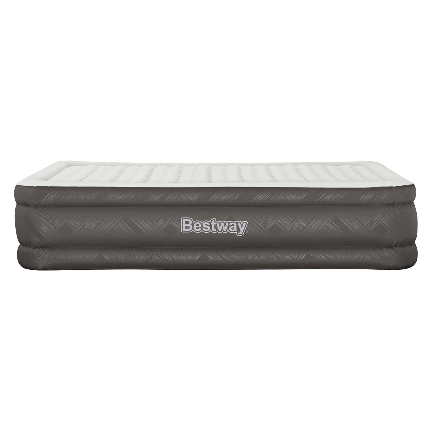 Zadbaj o wygodny sen w dowolnym miejscu dzięki dwuosobowemu materacowi dmuchanemu BESTWAY o wymiarach 203 × 152 × 46 cm. Dzięki wbudowanej pompce elektrycznej napompujesz go w kilka minut, podwójna wysokość ułatwi wstawanie, a technologia Wave-Beam zapewni stabilność i podparcie. Wytrzymały materiał Tritech oraz miękka welurowa powierzchnia gwarantują trwałość i przyjemny kontakt podczas snu.