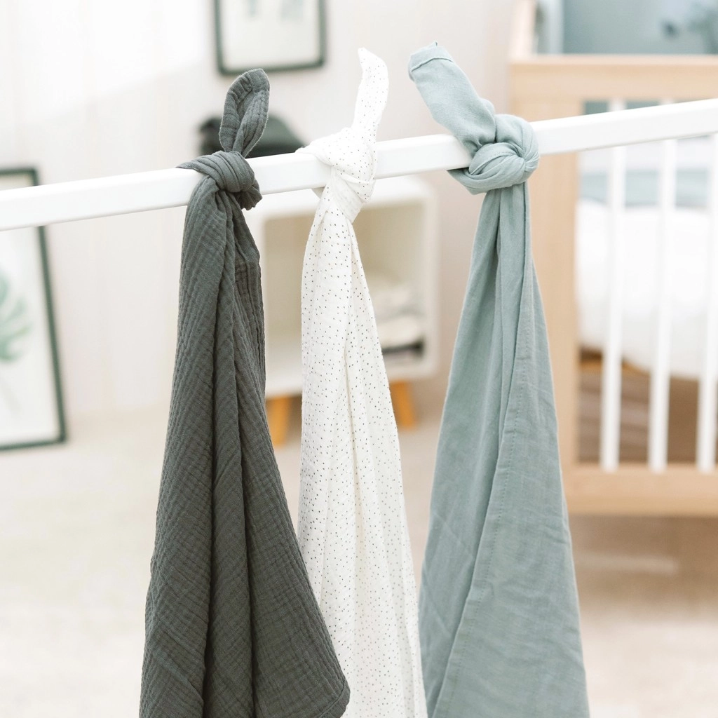- Wszechstronne zastosowanie – owijanie, kocyk, ręcznik, prześcieradło, podkład czy osłona podczas karmienia piersią.