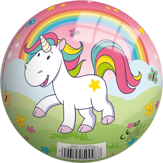 Wysokiej jakości piłka z PVC z motywem jednorożca o średnicy 130 mm.