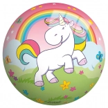 Wesoła piłka z nadrukiem jednorożców jest idealna do zabawy w ogrodzie, na boisku lub w basenie. Wykonana z wodoodpornego materiału, łatwo nadmuchiwalna.