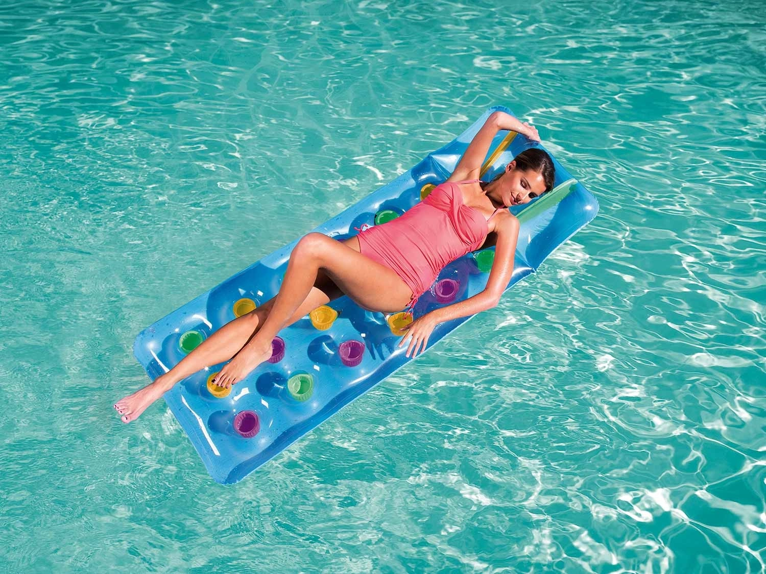 Mata z wytrzymałego PVC wytrzymuje obciążenie do 90 kg, a dzięki dwóm niezależnym komorom powietrznym oferuje lepszą stabilność i bezpieczeństwo. Żywe kolory i atrakcyjny design doskonale pasują do letniej atmosfery.