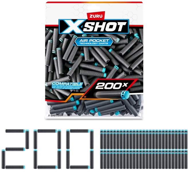 Ciesz się nieprzerwaną akcją z zapasem, który szybko się nie skończy. Ten obszerny zestaw 200 zapasowych strzałek ZURU X-SHOT jest idealny do intensywnych bitew, treningu celności oraz dużych gier imprezowych. Dzięki jaskrawym kolorom łatwo je odnajdziesz, a ich aerodynamiczny kształt poprawia stabilność lotu i zapewnia powtarzalne trafienia.
