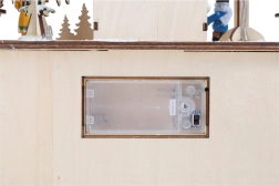 Wejdź do magicznego świata Świąt z naszym drewnianym kalendarzem adwentowym. Jego wspaniała scena jarmarku bożonarodzeniowego jest dopracowana w detalach i oświetlona delikatnym światłem, które ociepla domowe wnętrze: