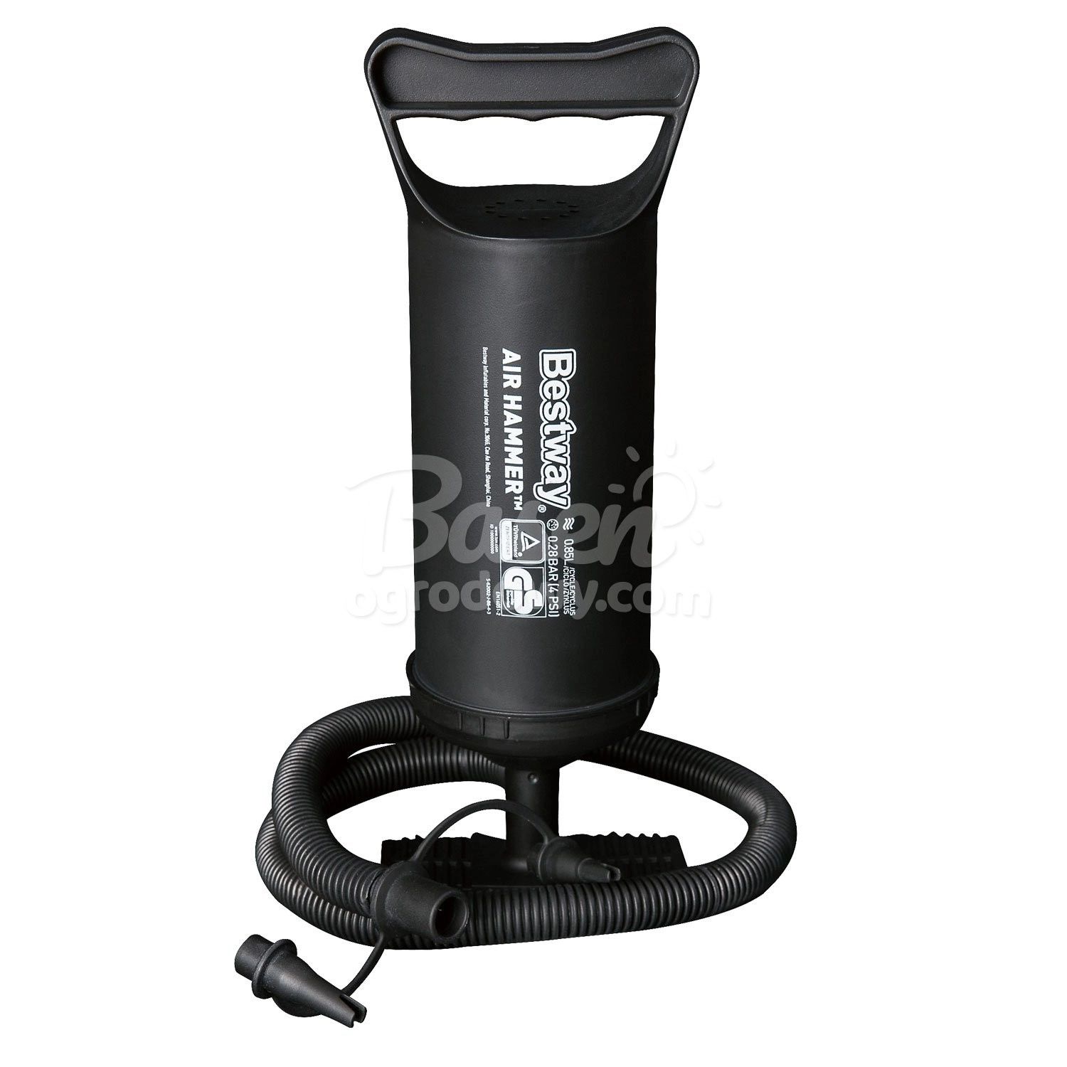 W zestawie znajduje się ręczna pompka tłokowa, dzięki której szybko napompujesz i spuścisz powietrze z materaca, oraz łatka naprawcza na nieprzewidziane sytuacje. Maksymalne obciążenie 300 kg zapewnia odpowiedni zapas dla komfortowego snu dwóch dorosłych osób.