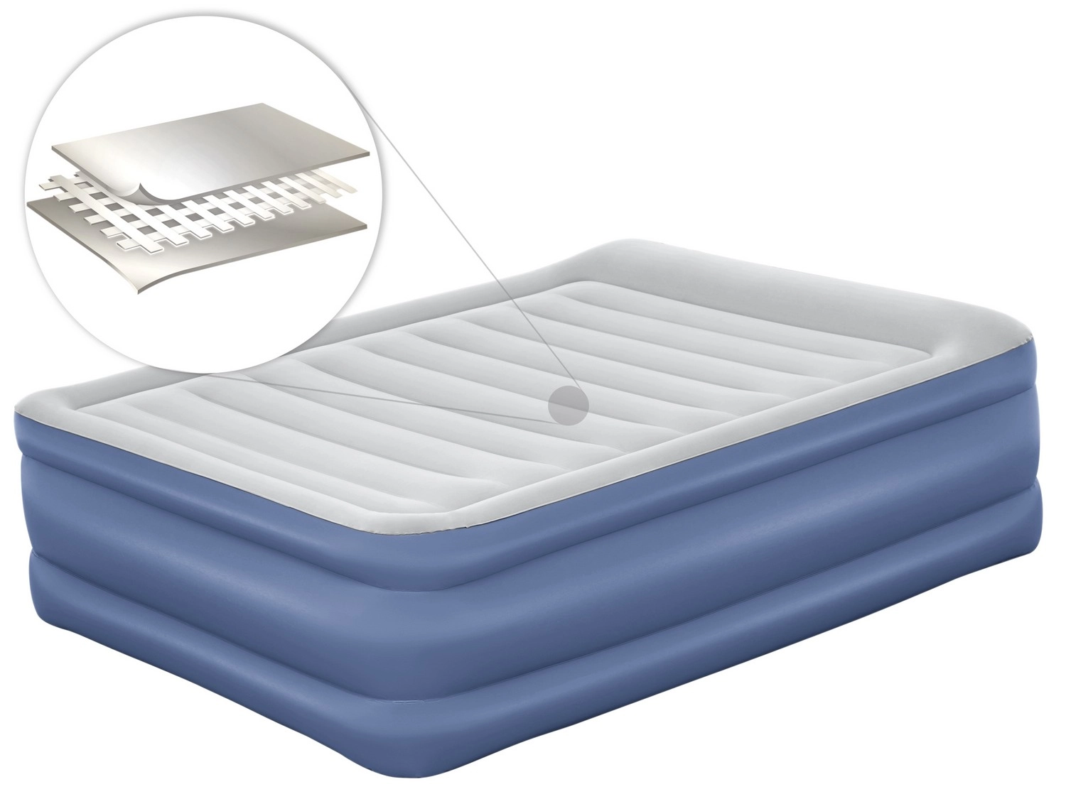 Dmuchane łóżko BESTWAY to świetny wybór dla gości, na działkę oraz do okazjonalnego codziennego spania. Podwójna wysokość 61 cm ułatwia kładzenie się i wstawanie, a przyjemna welurowa powierzchnia zapewnia komfort i zapobiega ślizganiu się prześcieradła. Wewnętrzne wzmocnienia I-beam utrzymują kształt i gwarantują równomierne podparcie na całej powierzchni.