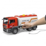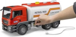 Cysterna MAN TGS od marki Bruder jest idealna dla wszystkich małych miłośników ciężarówek. To pojazd ma otwierane drzwi i składane lusterka wsteczne, co umożliwia elastyczną zabawę. Innowacyjny design obejmuje ręcznie sterowaną pompę powietrza oraz funkcjonalny gumowy wąż na wyciągarce, co zapewnia realistyczne wrażenia podczas zabawy.