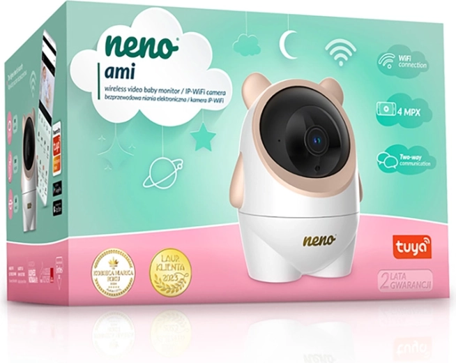 Neno Ami to inteligentna niania wideo, która łączy uroczy design z zaawansowaną technologią. Zapewnia szczegółowy podgląd w rozdzielczości 4 MP (2560 × 1440 px), płynny obrót głowicy kamery i szeroki kąt 120°. Dzięki trybowi nocnemu z podświetleniem IR zobaczysz, co dzieje się w pokoju także po zmroku.