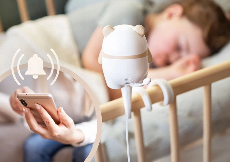Detekcja ruchu i dźwięku, powiadomienia na telefon, komunikacja dwukierunkowa, pomiar temperatury i wilgotności oraz odtwarzanie kołysanek – wszystko w zasięgu ręki.