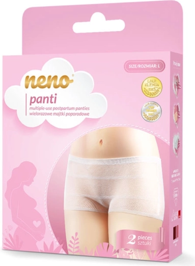 Wielorazowe majtki poporodowe Neno Panti M zapewniają delikatne podtrzymanie, wysoki komfort i pewne utrzymanie wkładek po porodzie. Dzięki wysokiemu stanowi chronią okolicę po cesarskim cięciu, są miękkie, oddychające i wykonane z elastycznego, trwałego materiału, który doskonale dopasowuje się do zmieniającego się ciała. Opakowanie zawiera 2 sztuki w rozmiarze M.