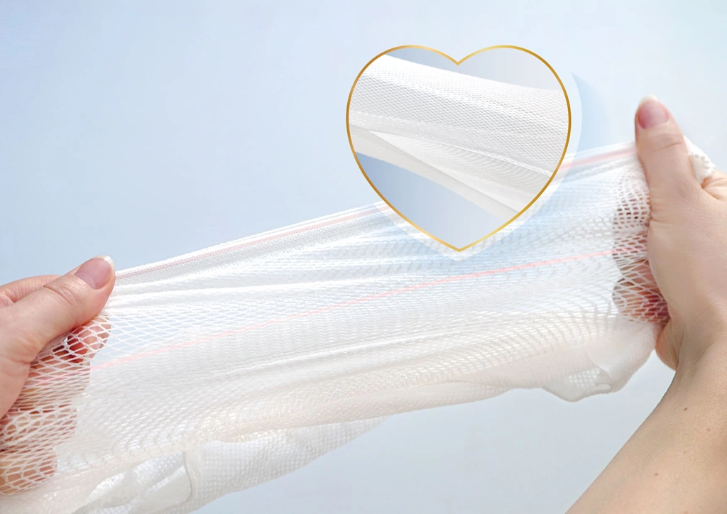 - Bezszwowe, elastyczne, oddychająca siateczka