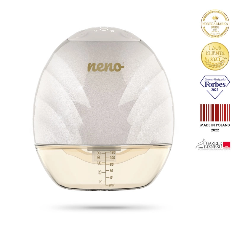 Neno Perla to kompaktowy i bezprzewodowy laktator zaprojektowany do wygodnego, dyskretnego i efektywnego odciągania mleka zawsze i wszędzie. Mieści się bezpośrednio w biustonoszu do karmienia, dzięki czemu podczas odciągania masz całkowicie wolne ręce. Oferuje 3 fazy odciągania z 9 poziomami intensywności, anatomiczną osłonę piersi pod kątem 105° dla lepszego przepływu mleka oraz do 120 minut pracy na jednym ładowaniu.