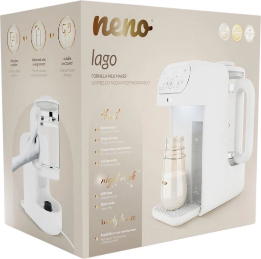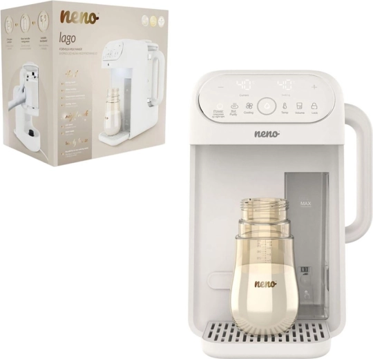 Neno Lago to niezawodny pomocnik dla rodziców, którzy chcą przygotować mleko modyfikowane szybko, bezpiecznie i bez stresu. Automatycznie dozuje wodę w wymaganej ilości i utrzymuje ją w idealnej temperaturze, dzięki czemu butelkę przygotujesz w kilka chwil – świetne zwłaszcza w nocy.