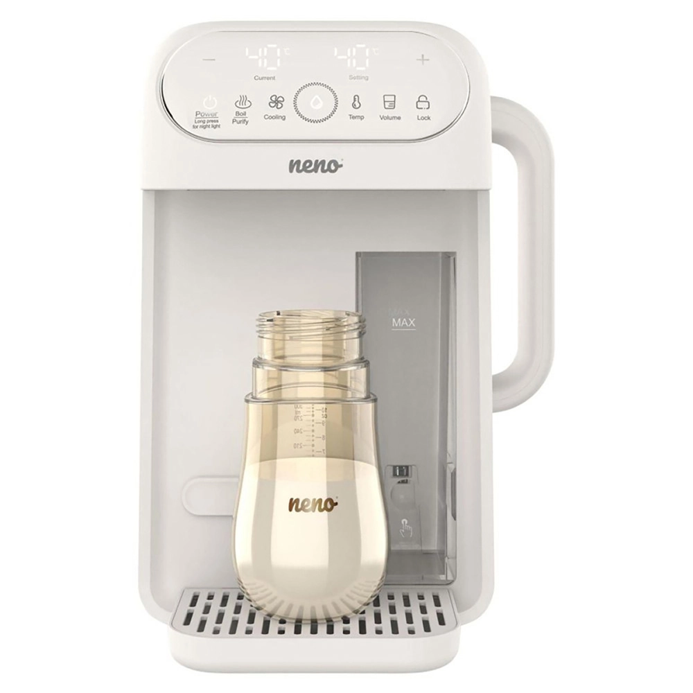 Ułatw sobie karmienie dziecka z urządzeniem Neno Lago, które zapewnia szybkie i automatyczne przygotowanie mleka modyfikowanego, właściwą temperaturę wody oraz precyzyjne dozowanie. Dzięki regulowanej objętości, funkcji podtrzymywania temperatury i intuicyjnemu wyświetlaczowi LED jest idealne do wygodnego, zwłaszcza nocnego karmienia bez zbędnego czekania.
