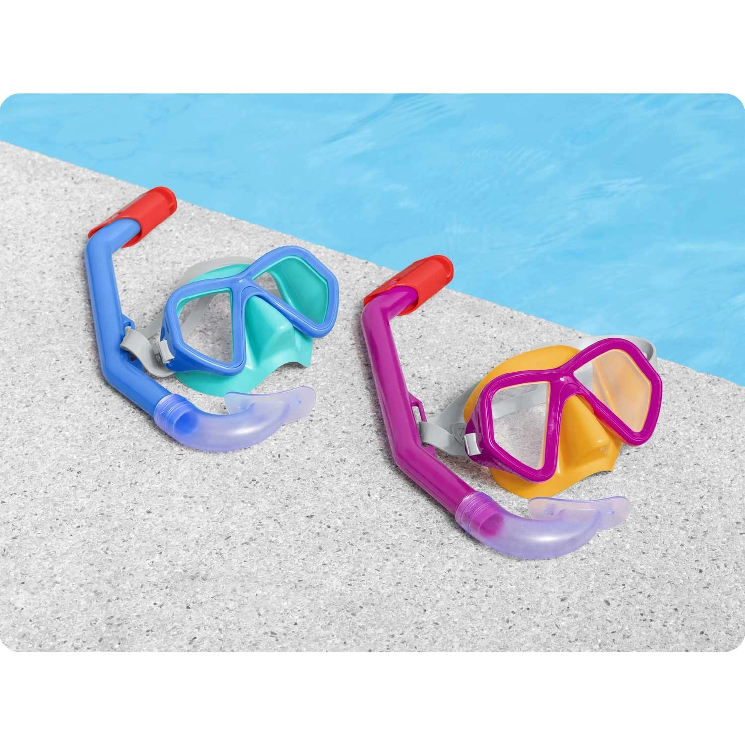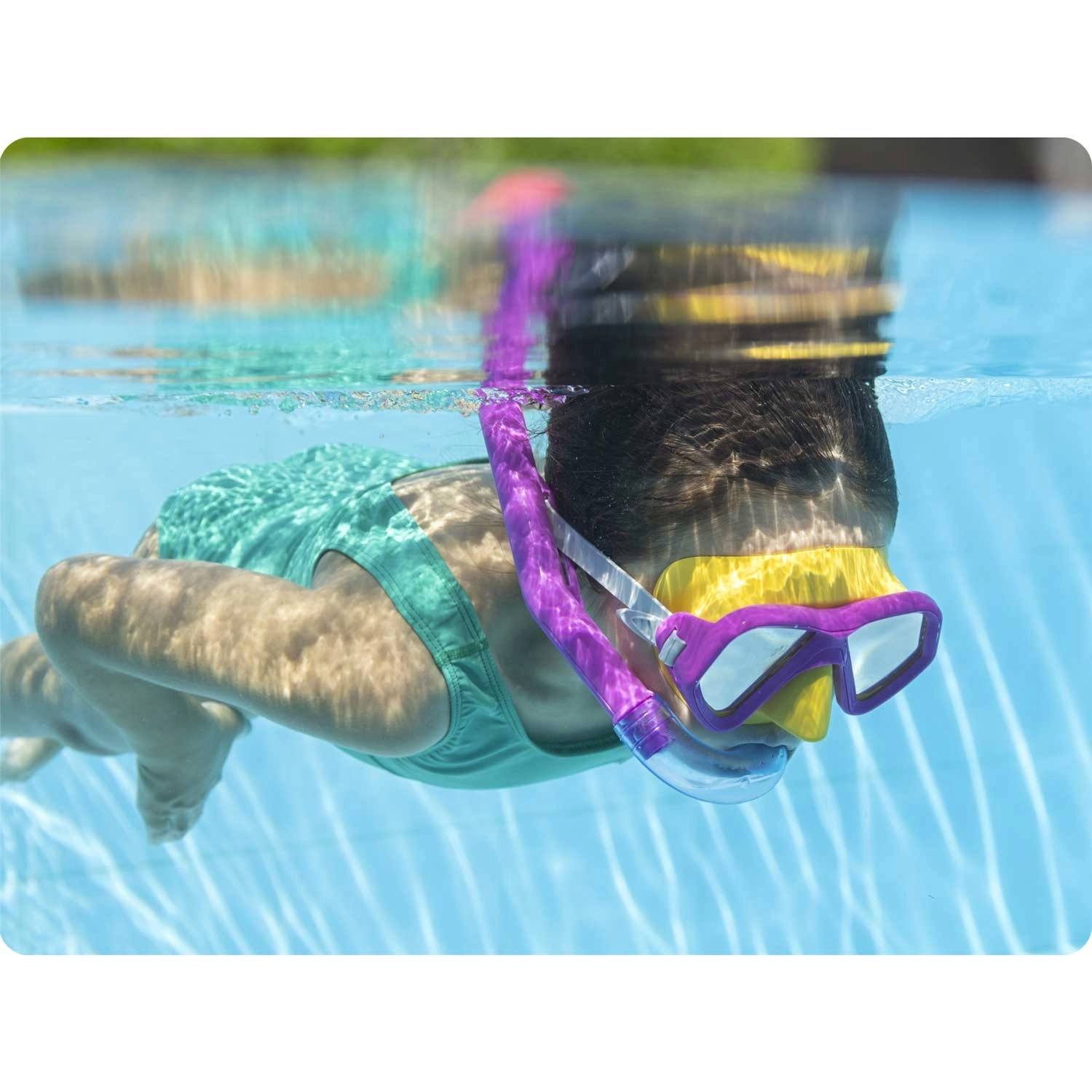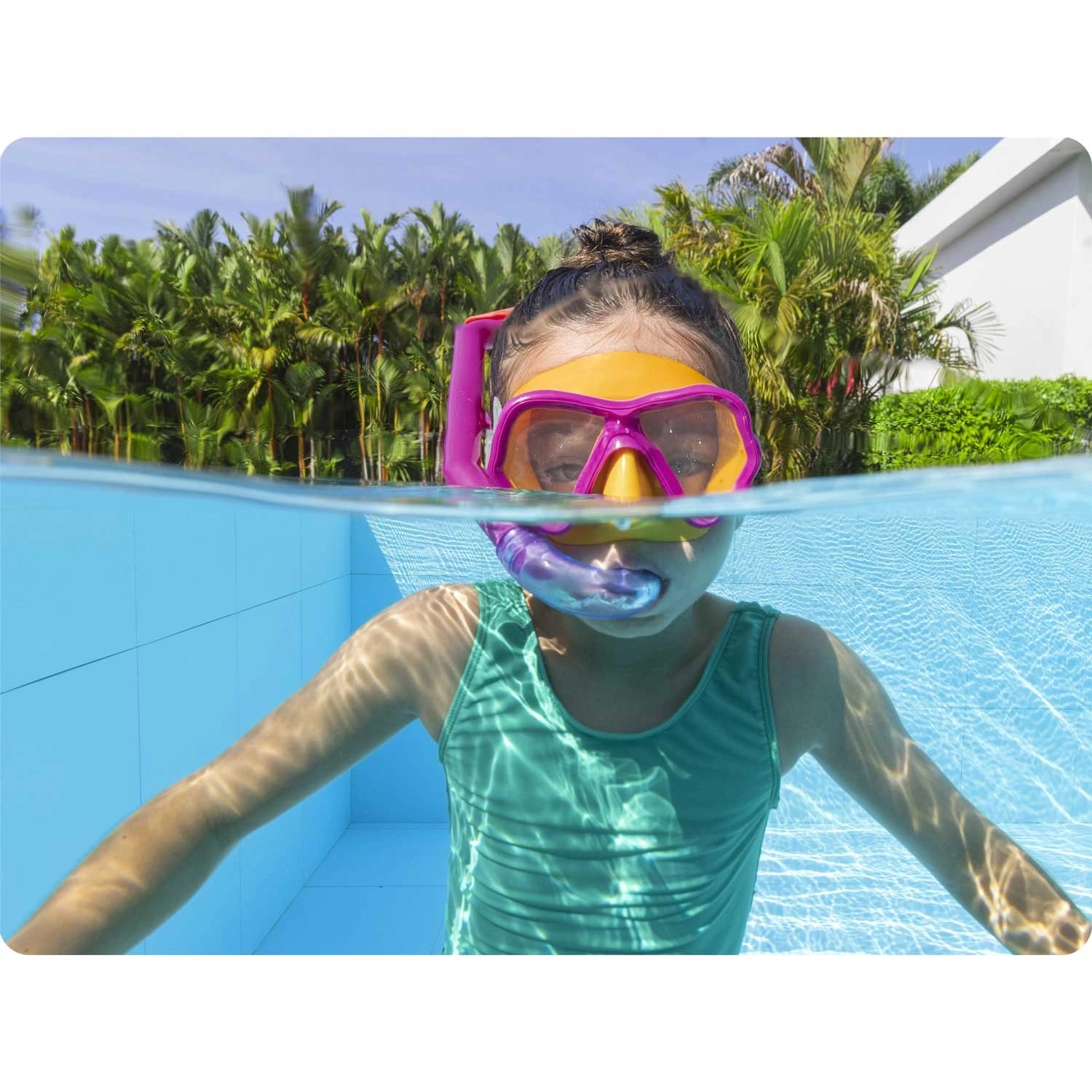 Ten lekki i kolorowy zestaw do nurkowania z rurką BESTWAY dostarcza dzieciom i młodzieży radości z odkrywania podwodnego świata. Maska z poliwęglanowymi soczewkami i ochroną UV zapewnia jasne, szerokie pole widzenia, a dzięki miękkiej uszczelce i regulowanemu silikonowemu paskowi perfekcyjnie leży na twarzy bez nieprzyjemnych przecieków.