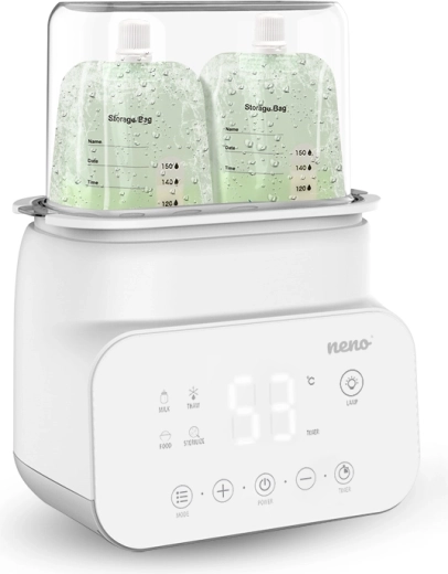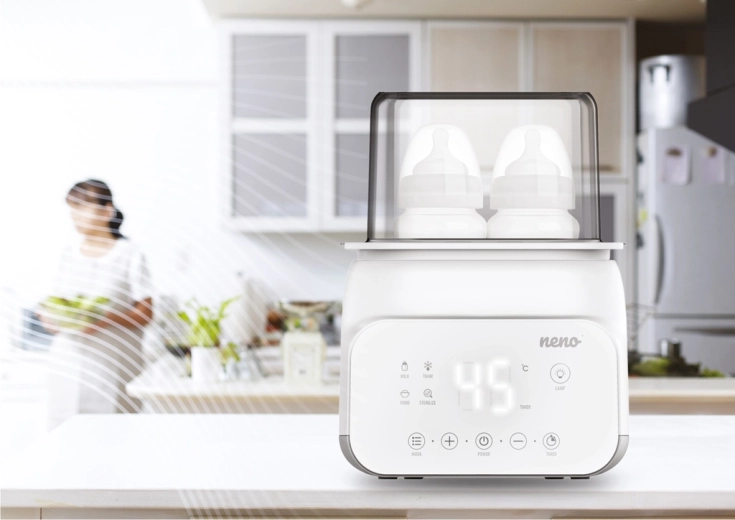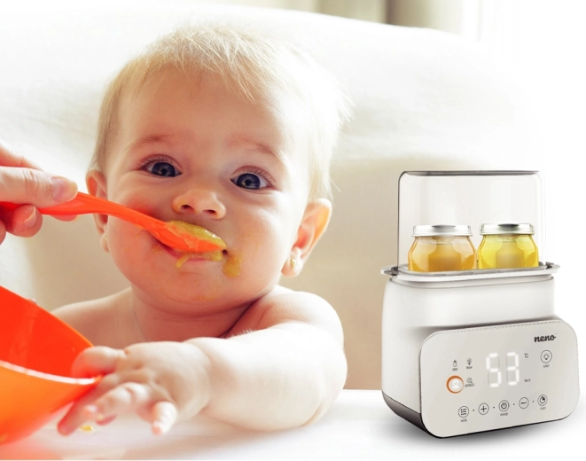Ułatw sobie opiekę nad maluchem z urządzeniem Neno Vita 5w1 – sprytnym pomocnikiem, który sterylizuje, podgrzewa mleko, podgrzewa pokarmy, rozmraża i utrzymuje stałą temperaturę. Dzięki czytelnemu wyświetlaczowi LCD, przyciskom dotykowym i nowoczesnemu, minimalistycznemu wzornictwu wszystko zrobisz szybko, bezpiecznie i wygodnie – od przygotowania mleka po higieniczną sterylizację butelek i smoczków.