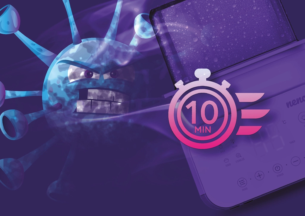 Wydajny tryb sterylizacji pomaga utrzymać butelki, smoczki, gryzaki i smoczusie higienicznie czyste. W kilka minut urządzenie usuwa niepożądane mikroorganizmy i przygotowuje wszystko do bezpiecznego użycia.
