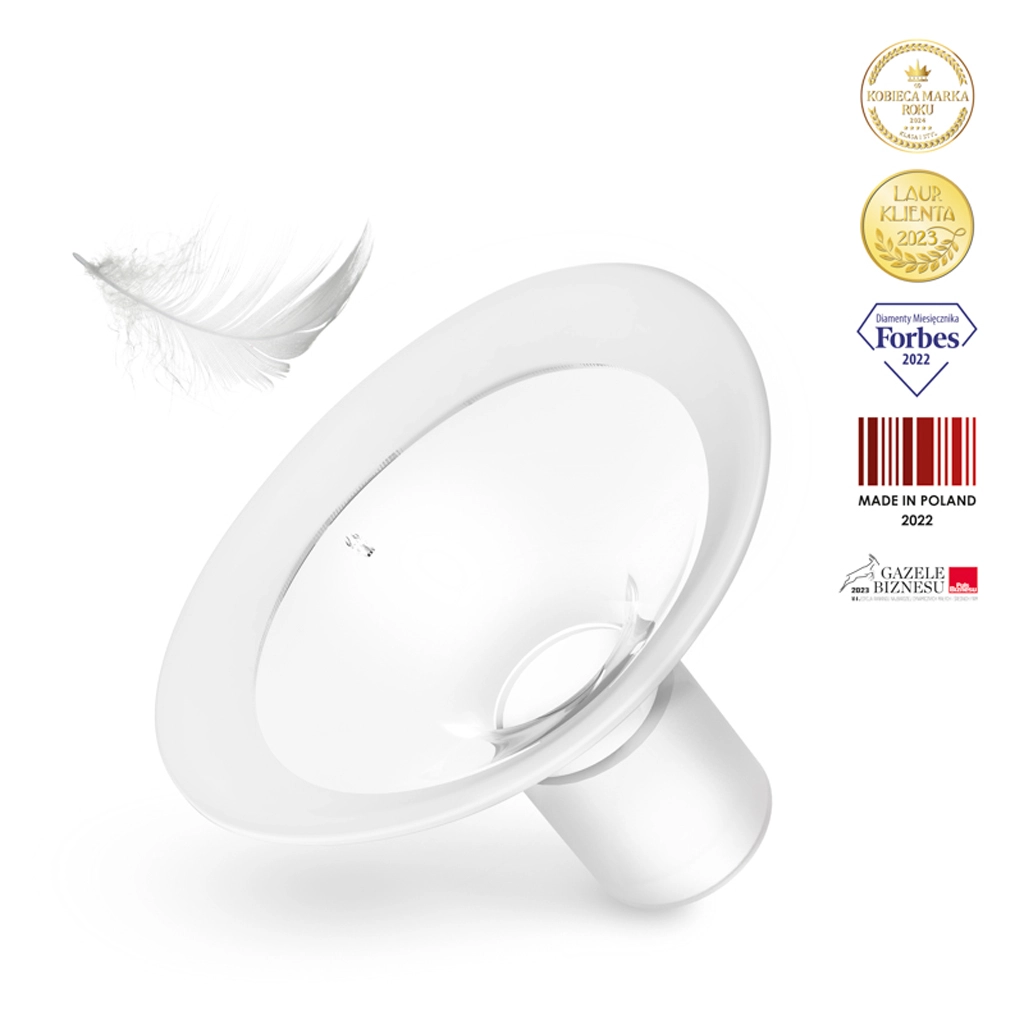 Delikatna silikonowa nakładka dopasowuje się do kształtu piersi, równomiernie rozkłada nacisk i pomaga zmniejszać podrażnienia podczas odciągania.