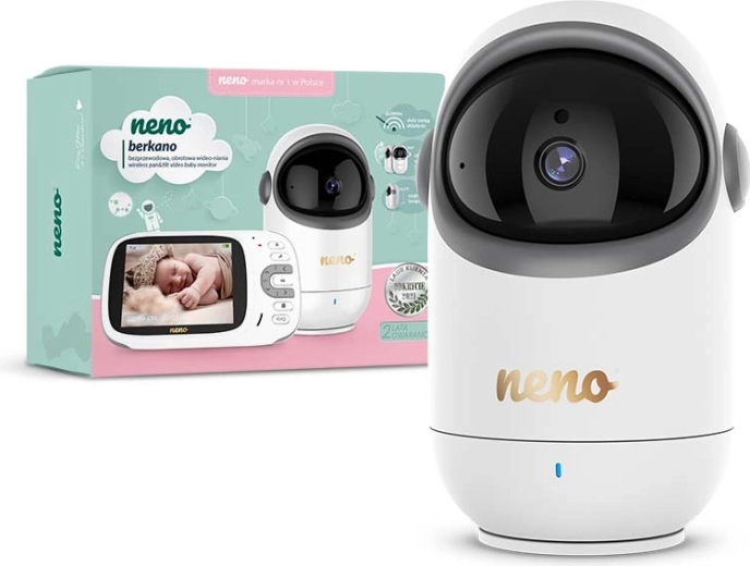Zachowaj spokój i pewność dzięki niani wideo Neno Berkano. Obrotowa kamera o szerokim polu widzenia śledzi każdy ruch, a kolorowy wyświetlacz 3,2" pokazuje wszystkie ważne detale. Dwukierunkowe audio pozwala nie tylko słyszeć dziecko, ale też uspokoić je własnym głosem.