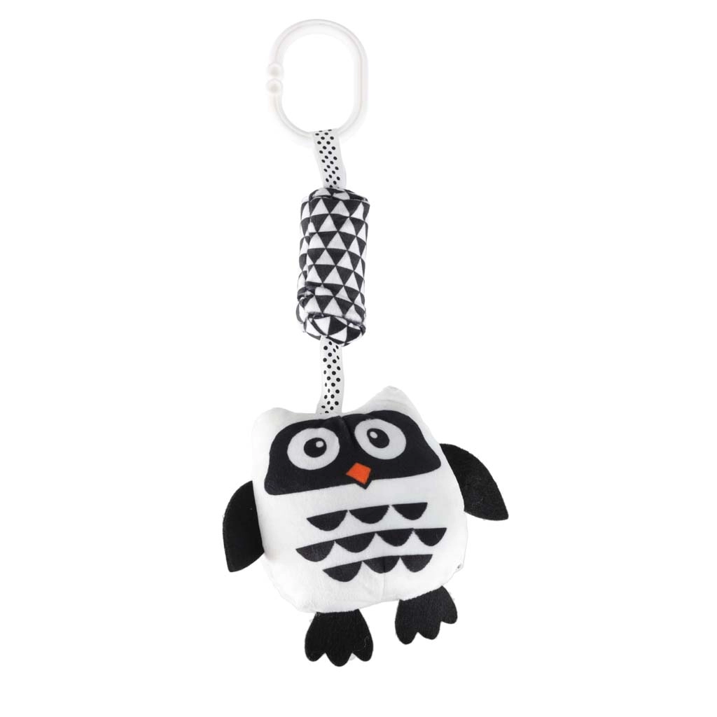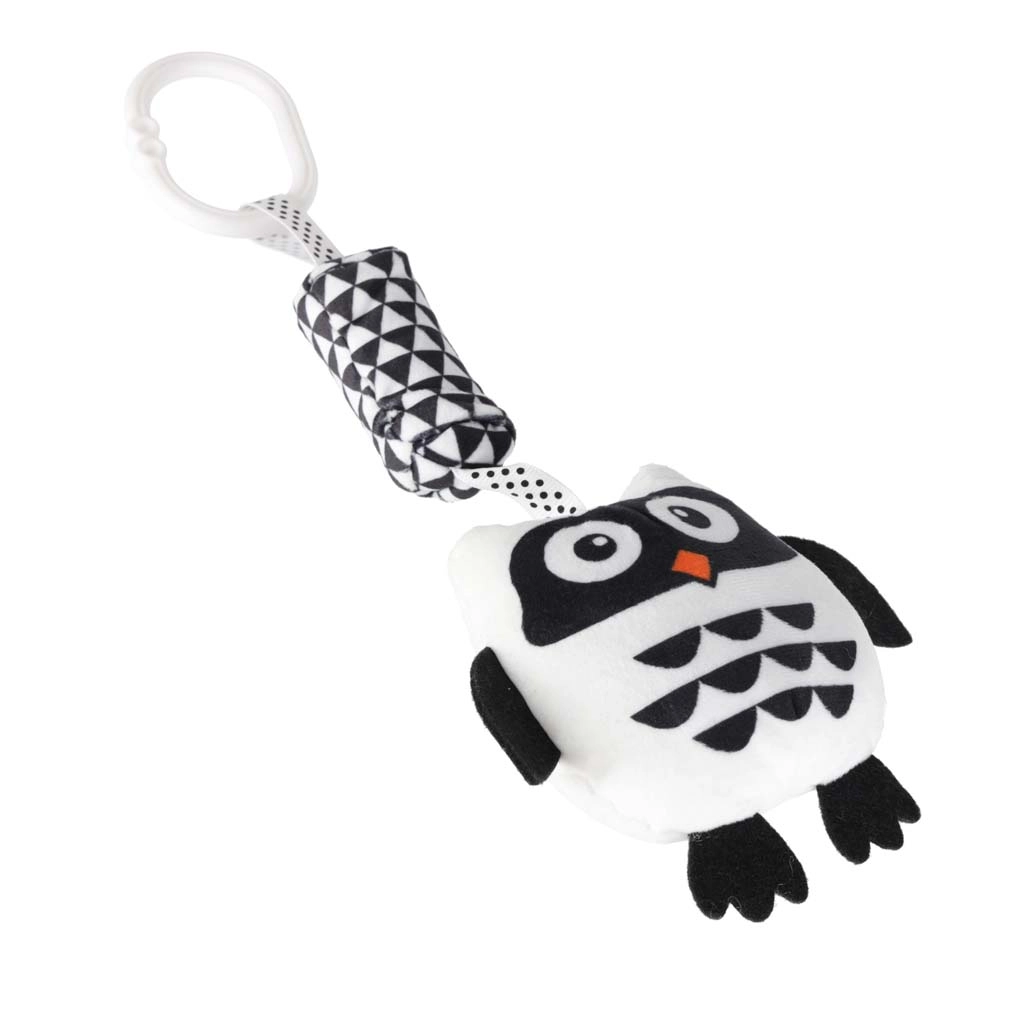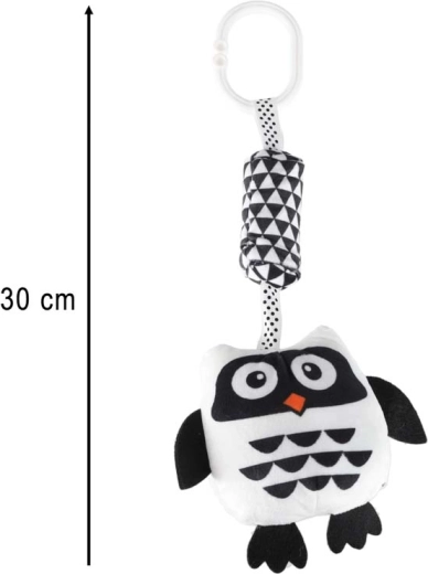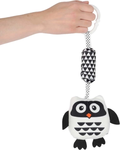 Ta kontrastowa zawieszana zabawka w kształcie sowy została zaprojektowana z myślą o potrzebach noworodków. Wysoki kontrast czerni i bieli przyciąga wzrok dziecka i wspiera wczesny rozwój widzenia. Miękkie, przyjemne w dotyku materiały oraz bezpieczne wykonanie gwarantują komfortowe i bezpieczne odkrywanie.