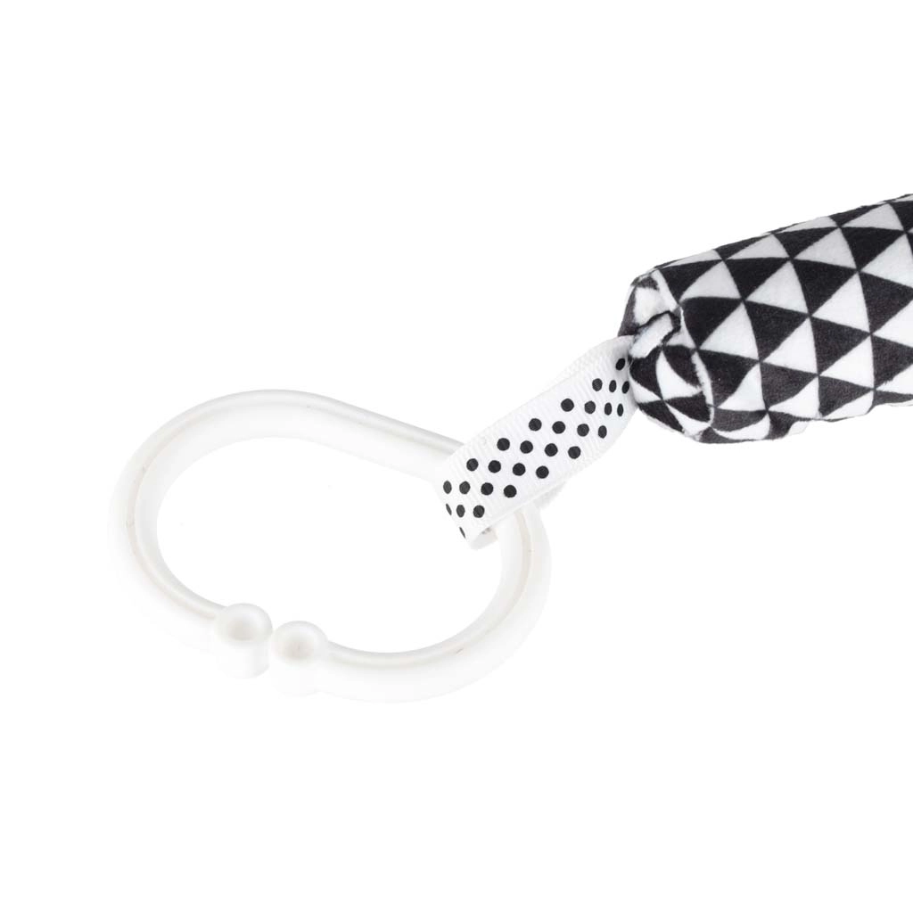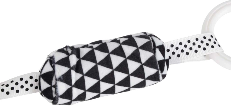 Praktyczny klips/pierścień umożliwia szybkie przypięcie do rączki wózka, fotelika samochodowego lub krawędzi łóżeczka. Zabawka pozostaje zawsze pod ręką.