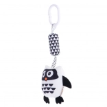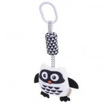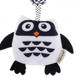Zawieszka w kształcie sowy wykonana jest z miękkiego i przyjemnego materiału, dostosowanego do potrzeb najmłodszych dzieci. Klips zapewnia łatwe przymocowanie do wózka, łóżeczka lub nosidełka. Dzięki różnorodnym fakturom powierzchni zabawka stymuluje dotyk u dzieci. Grzechotka i szeleszczące elementy stymulują słuch, natomiast użycie kontrastowych odcieni pobudza zmysły wzrokowe. Czarno-biały design jest najlepszym wyborem dla niemowląt, które jeszcze nie mają w pełni rozwiniętego wzroku.