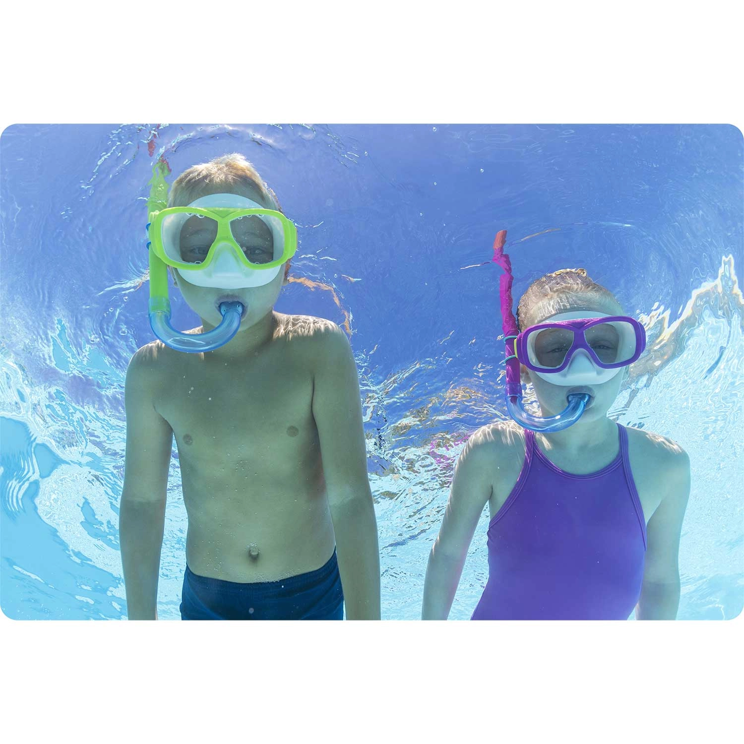 Zestaw BESTWAY to idealny wybór na rodzinne wakacje, do basenu i nad morze. Maska z hartowanego szkła zapewnia czysty i trwały obraz, a miękka kołnierz maski i regulowany silikonowy pasek pomagają uzyskać szczelne i wygodne dopasowanie do różnych kształtów twarzy.
