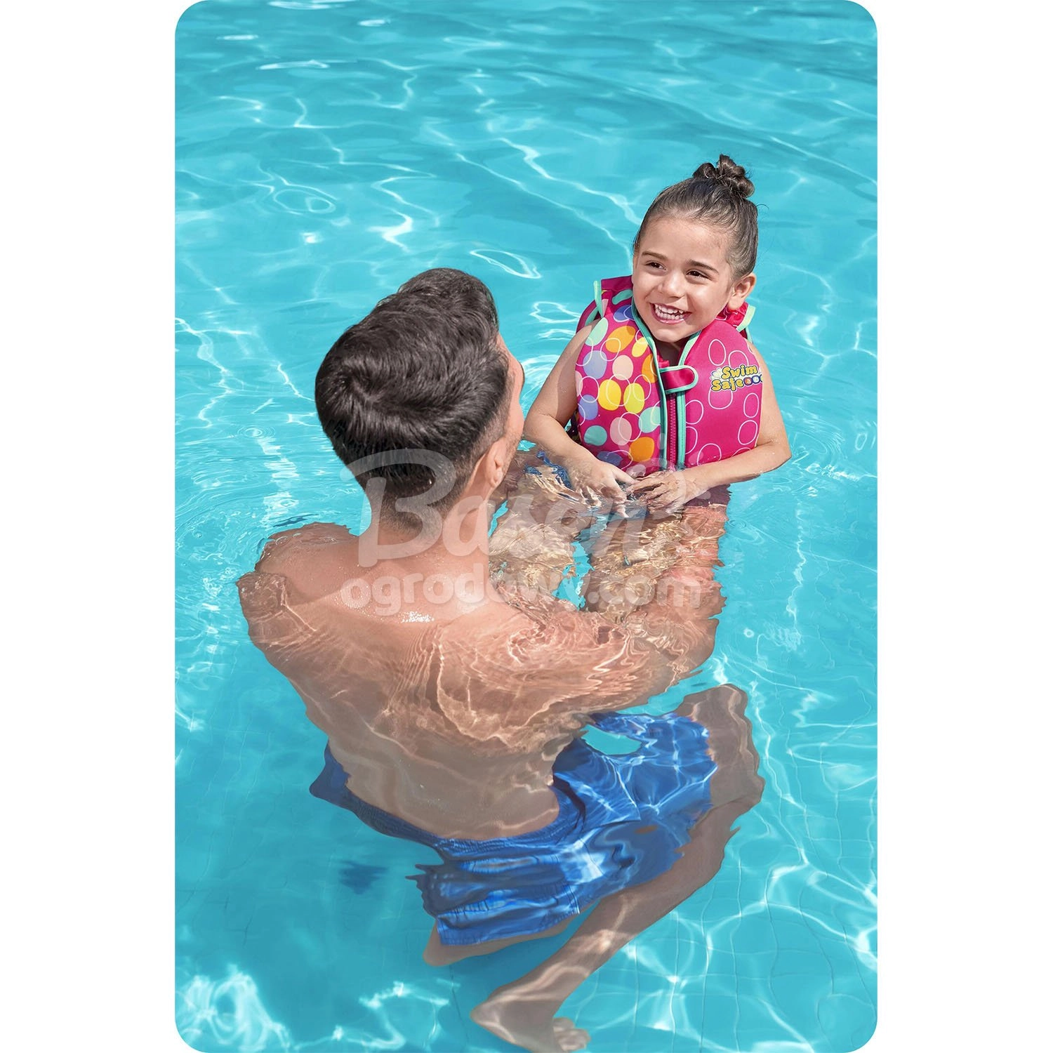 Zrób pierwsze kroki w wodzie bezpiecznie i z uśmiechem – różowa dziecięca kamizelka do pływania BESTWAY w rozmiarze S/M oferuje komfortowy materiał, regulowane klamry oraz sprawdzoną wyporność. Dzięki ochronie UV UPF 50+ chroni wrażliwą skórę na słońcu i pomaga dzieciom budować pewność siebie podczas zabawy i nauki pływania.