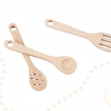 • Bogate akcesoria: garnek z pokrywką, patelnia, solniczka, pieprzniczka, łyżka, cedzak, łopatka z otworami.
