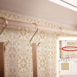 • Realistyczne detale: metalicznie złoty kran, listwa z haczykami, rattanowy efekt na drzwiczkach piekarnika.
