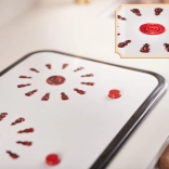 Wyjmowana płyta grzewcza po naciśnięciu przycisków świeci i wydaje dźwięki przypominające prawdziwe gotowanie. Dzieci bezpiecznie poznają zasady w kuchni bez ryzyka oparzenia.