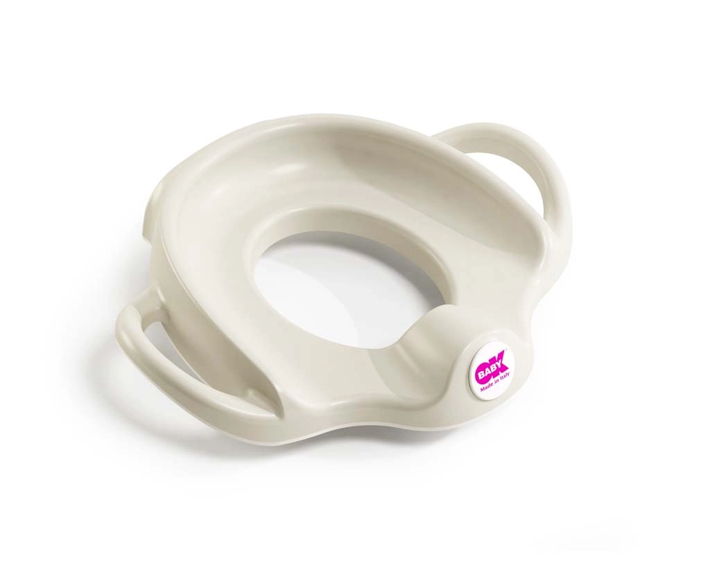 Szerokie, podwyższone uchwyty dają dziecku stabilny chwyt i poczucie bezpieczeństwa, a gładki plastik bardzo łatwo się czyści. Nakładka jest lekka, poręczna i po użyciu wystarczy ją postawić – stoi samodzielnie, co ułatwia oszczędne przechowywanie.