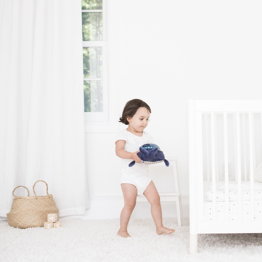 Wybierz kołysankę, morską melodię lub biały szum (deszcz, fale, bicie serca). Głośność łatwo dopasujesz do otoczenia i nastroju maluszka.