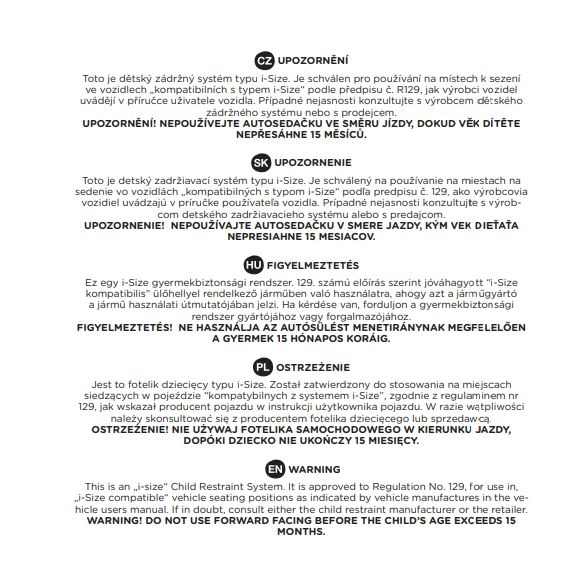 - Bezpieczeństwo i-Size zgodnie z normą ECE R129 dla lepszej ochrony dziecka