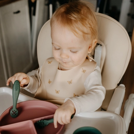 Silikonowy śliniak Petite&Mars został zaprojektowany z myślą o łatwych i czystych pierwszych posiłkach oraz samodzielnym jedzeniu. Ergonomiczny kształt, miękki i elastyczny materiał oraz cztery poziomy regulacji wokół szyi gwarantują wygodę i pewność przy każdym posiłku. Głęboka kieszonka skutecznie zatrzymuje jedzenie i płyny, dzięki czemu ubranie pozostaje dłużej czyste.