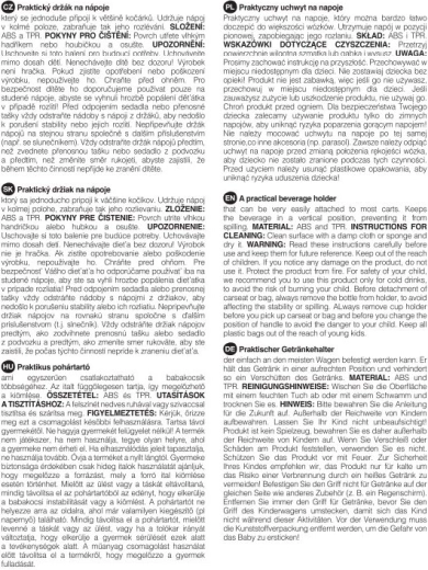 Uchwyt utrzymuje napój w stabilnej pozycji pionowej, co pomaga zapobiegać rozlaniu. Idealny do butelek dziecięcych i kawy na wynos. Pielęgnacja jest prosta – wystarczy przetrzeć wilgotną ściereczką i osuszyć.