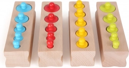 Drewniane kolorowe waleczki pomagają dzieciom zrozumieć wzory i podejmować decyzje o właściwym umieszczeniu.