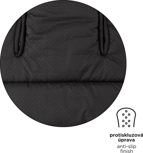 Pionowe otwory na pasy oraz antypoślizgowy tył (ABS) zapewniają bezpieczne i stabilne mocowanie w większości wózków i fotelików samochodowych.