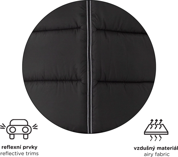 Śpiworek PETITE&MARS Jibot jest ekstra długi (do 110 cm), ma antypoślizgowy tył (ABS), elementy odblaskowe dla bezpieczeństwa oraz 6 uniwersalnych otworów do mocowania. Przemyślane pionowe przejścia na pasy zapewniają maksymalną kompatybilność także z wózkami ze specyficznymi systemami pasów.